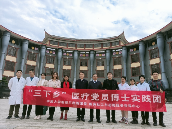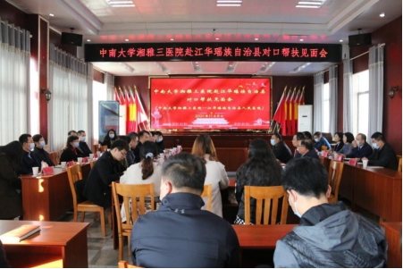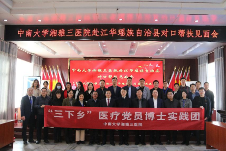 为推进乡村振兴与对口帮扶工作,11月7-9日,由中南大学湘雅三医院党委书记何庆南,党委副书记、纪委书记张劲强带队,医务部联合工会、团委及临床心理科共同组织的“2021中南大学湘雅三医院党员专家博士团江华行”系列帮扶活动在湖南省永州市江华瑶族自治县举行。湘雅三医院医务部副主任刘作良、工会常务副主席熊晓云、团委书记程海威及省医保专委会副主委熊灿娟、临床心理科主任唐秋萍、神经内科副主任袁毅、血液内科副主任蒋铁斌、医院评价部副主任唐永忠、护理部科护士长卜平元等20人组成的党员专家博士团在当地开展了医疗帮扶、教育帮扶、心理健康服务等活动。活动期间,江华县县委书记段贵建,县委副书记、县长吴君臣等县领导接待了专家博士团一行。