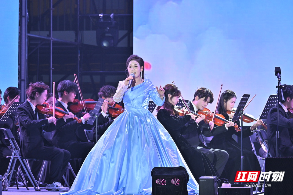 女声独唱《绒花》在交响乐团烘托下更显厚重,歌颂革命先辈奉献青春的崇高精神,观众打开手机闪光灯致意,彰显传承红色基因的担当。