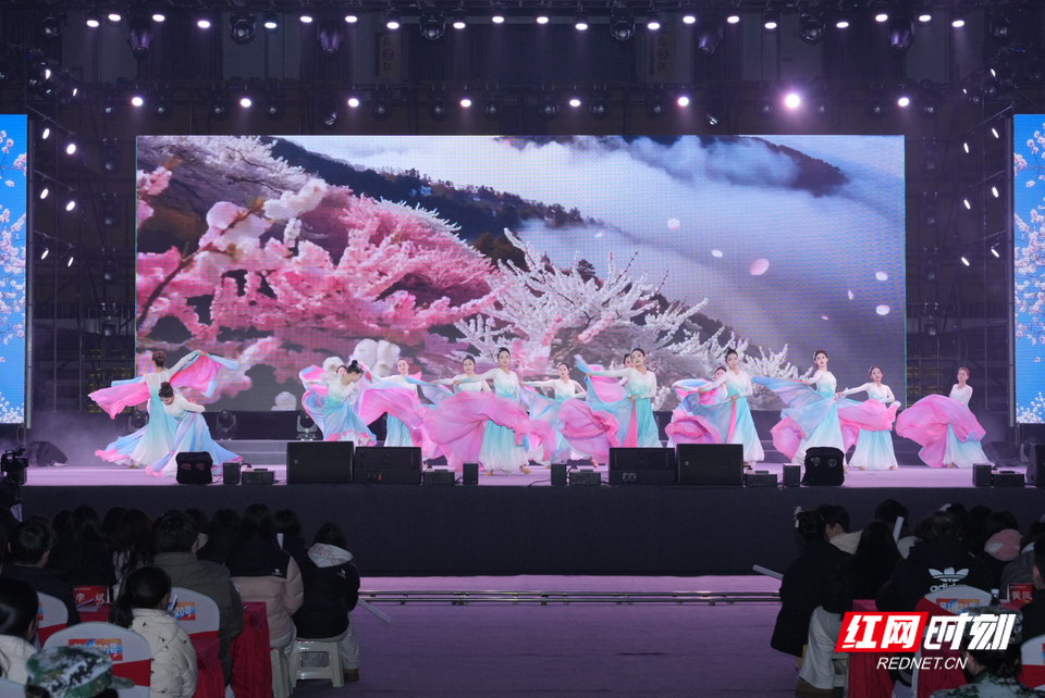群舞《桃花红杏花白》以山西左权民歌为灵感,用灵动舞步复刻山花烂漫图景,既展现中国的乡土风情,又传递对美好生活的向往,让古老民歌焕发新生。