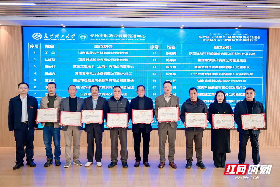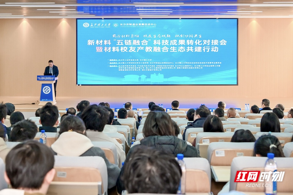 红网时刻新闻1月10日讯(记者 汪衡 通讯员 杨宁)新材料科技成果如何加快走向产业一线?校园科研创新如何精准对接企业真实需求?1月9日,新材料“五链融合”科技成果转化对接会在长沙理工大学云塘校区举行。本次大会由长沙市工业和信息化局、长沙理工大学指导,长沙理工大学材料科学与工程学院、长沙市制造业发展促进中心、长沙理工大学校友总会校友促进经济发展专业委员会联合主办,以“前沿材料引领·校友生态赋能·双创协同共生”为主题,聚焦产业链、创新链、供应链、人才链、资金链深度融合,着力推动新材料领域科技成果从实验室走向生产线。