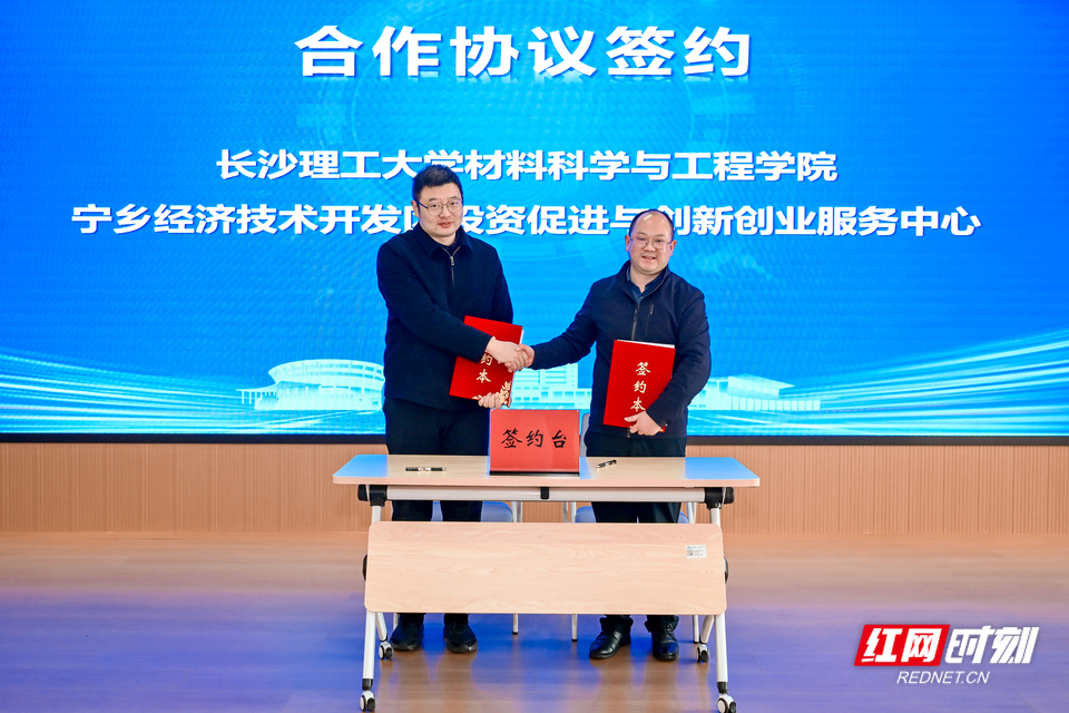 长沙理工大学材料科学与工程学院与宁乡经济技术开发区投资促进与创业服务中心签署合作协议,进一步拓展校地协同创新空间,为科技成果转化和产业协同发展注入新动能。