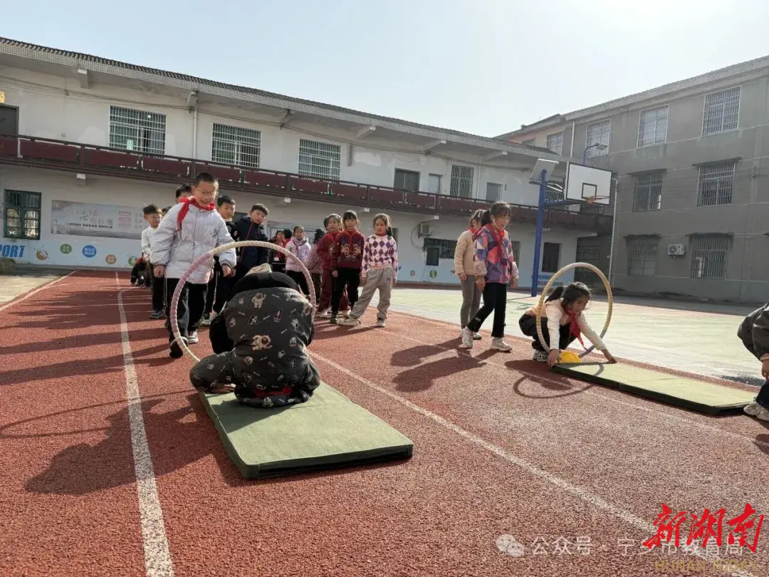 运动项目按年级分类:低年级以丢沙包这类“趣味游戏”启蒙运动兴趣,中年级侧重“技能奠基”,开展跳格子、前滚翻等训练,高年级则在老师保护下进行跳鞍马等“素质挑战”。