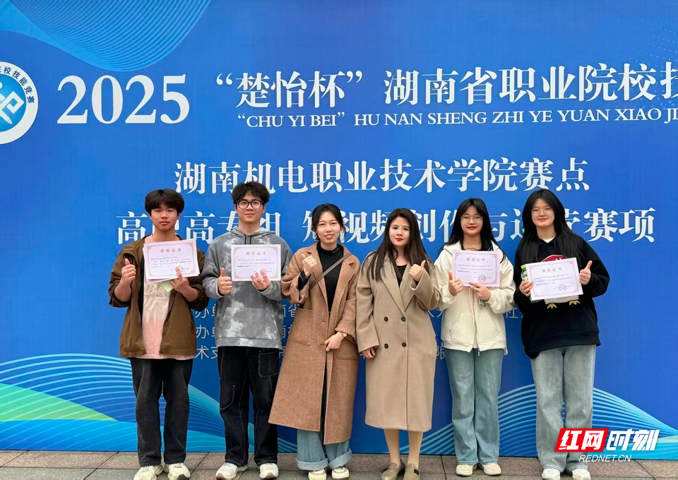 2025年,胡杨指导的学生团队在“楚怡杯”湖南省职业院校技能竞赛与湖南省教育厅安全短视频大赛中双双斩获一等奖。荣誉的背后是严苛的备赛训练,她将竞赛的技术规程和创意标准,分解为一个个阶梯式的课堂训练模块。在安全短视频大赛中,为找到最佳拍摄角度,她多次带领学生在校园及周边实地勘景。炎热的夏天,团队扛着设备在户外反复调试。在草丛中拍摄时师生们忍受蚊虫叮咬,只为捕捉一个完美的镜头。胡杨认为,这个过程锤炼的不仅是专业技能,更是精益求精的工匠精神和战胜困难的坚韧意志。