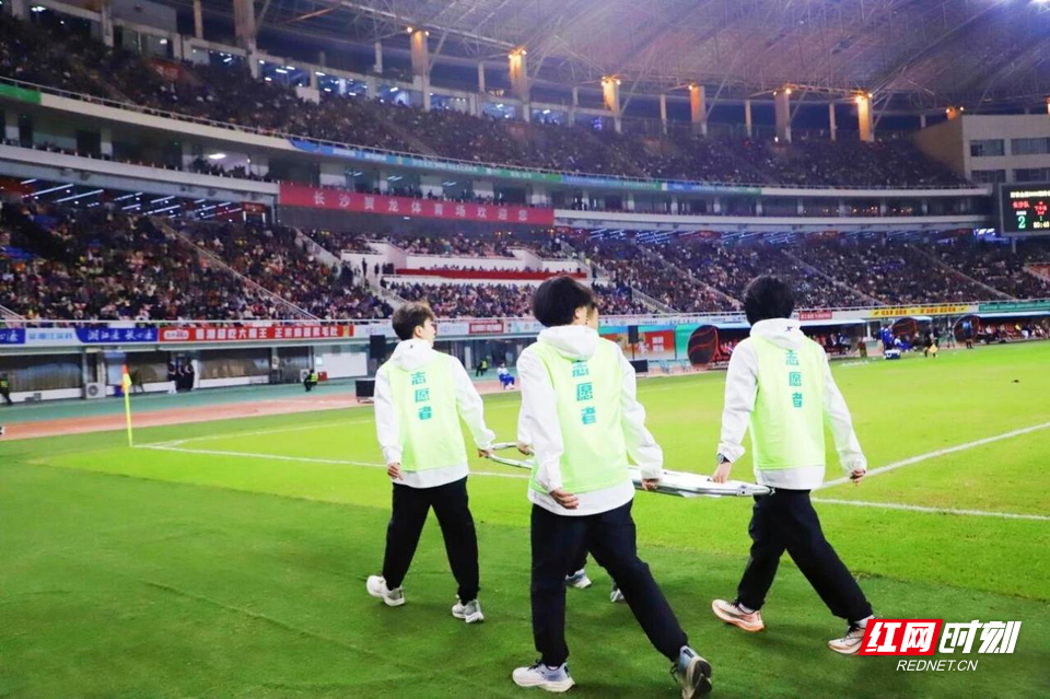 “看到球员安全离场得到有效救治,我悬着的心才敢放下”,在长沙主场对阵衡阳的比赛中,酣战之际一名球员摔倒在地,长沙商贸旅游职业技术学院学子方运与“急救先锋队”其他成员迅速行动、配合默契,成功将伤员安全转移,以专业应对护航赛事平稳运行。