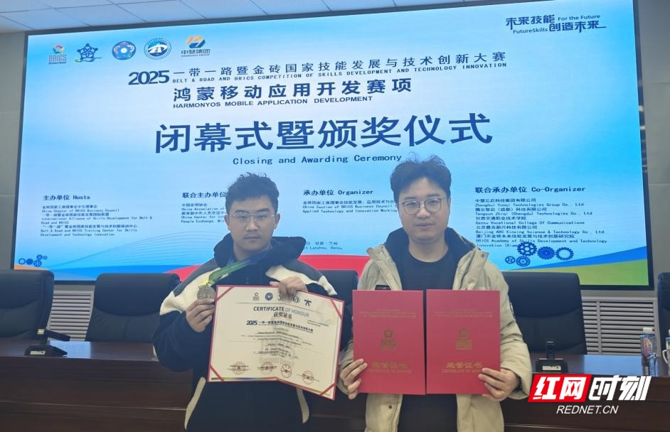 红网时刻新闻1月7日讯(记者 汪衡 通讯员 李沐阳 )近日,2025“一带一路”暨金砖国家技能发展与技术创新大赛——鸿蒙移动应用开发赛项全国总决赛落幕。湖南水利水电职业技术学院2024级信息安全技术二班学生黄孝文迪在教师潘彪、龙海星的指导下,荣获全国总决赛二等奖,学校获评“优秀组织奖”,龙海星荣获“优秀指导教师”称号。