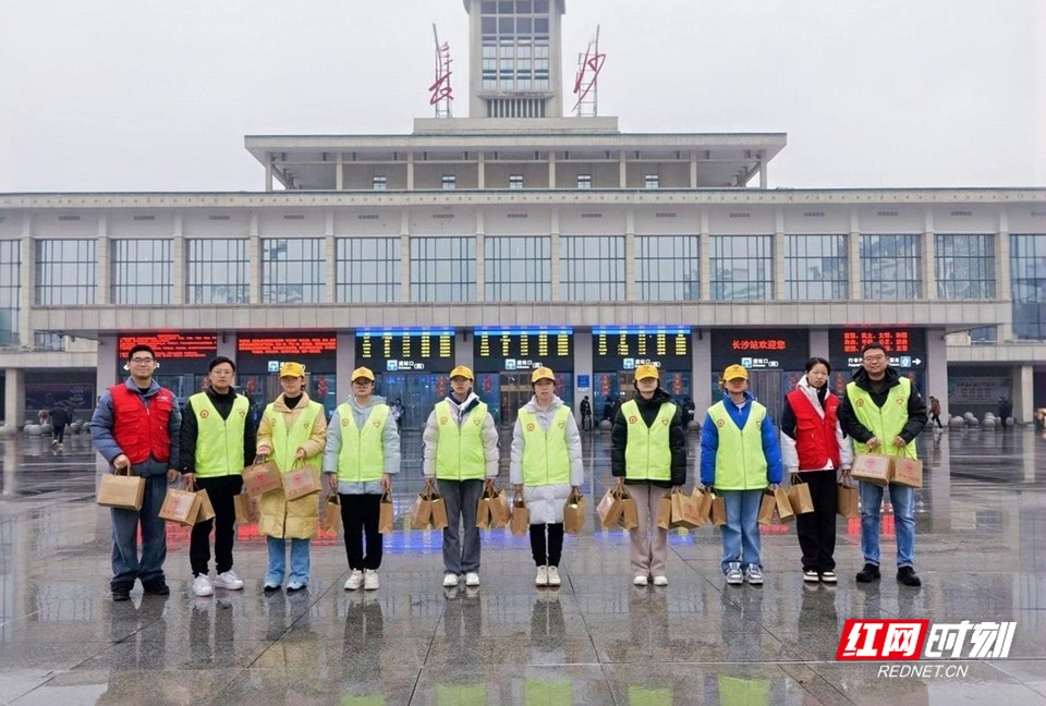 2月10日,长沙民政职业技术学院联合长沙火车站,组织志愿者在车站周边开展“暖‘新’关爱活动”。