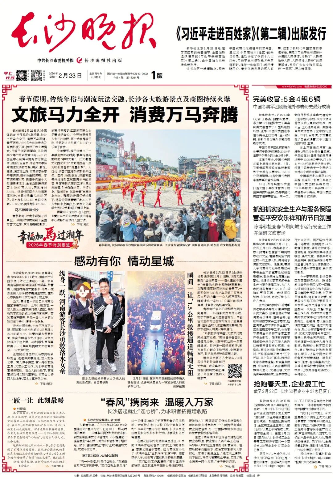 骏马迎春,长沙文旅马力全开,消费万马奔腾。春节假期,长沙各大旅游景点及商圈热度不减,持续开启火爆模式,从橘子洲到岳麓山,从恰同学少年广场到杜甫江阁,从长沙国金中心到黄兴南路步行商业街,游客纷至沓来,体验传统年俗与潮流玩法的交融,美食、潮玩、非遗、演艺齐上阵,市民游客乐享年味满满、精彩纷呈的假期。春节假期第8天,根据手机信令大数据建模统计,全省当日接待游客2179.95万人次,同比增长3.47%。根据银联商务大数据建模统计,当日交易量7238.53万笔,同比增长52.24%;当日交易额75.38亿元,同比增长42.98%。