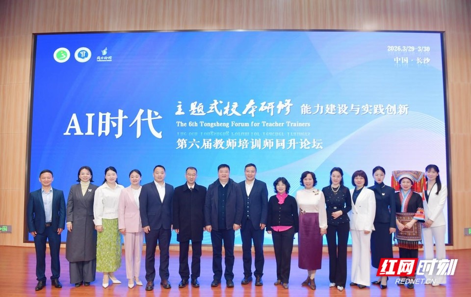 3月29日至30日,第六届教师培训师同升论坛在长沙市天心区仰天湖实验学校举办。来自全国20余个省、市、自治区的近400名教育专家、教师培训师、中小学校长及一线教师齐聚星城长沙,紧扣“AI时代的主题式校本研修:能力建设与实践创新”核心议题,锚定“精准·赋能·共生”实践逻辑,围绕校本研修高质量发展展开深度研讨,共绘AI时代教师专业成长新蓝图。