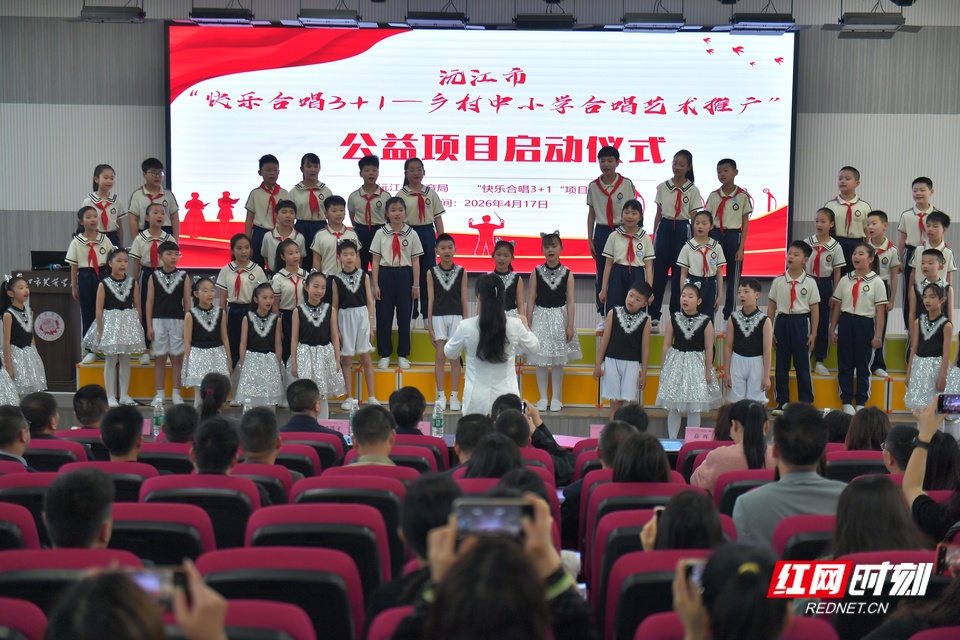 4月17日,沅江市“快乐合唱3+1—乡村中小学合唱艺术推广”公益项目启动仪式暨美育培训活动在沅江市芙蓉学校举行。