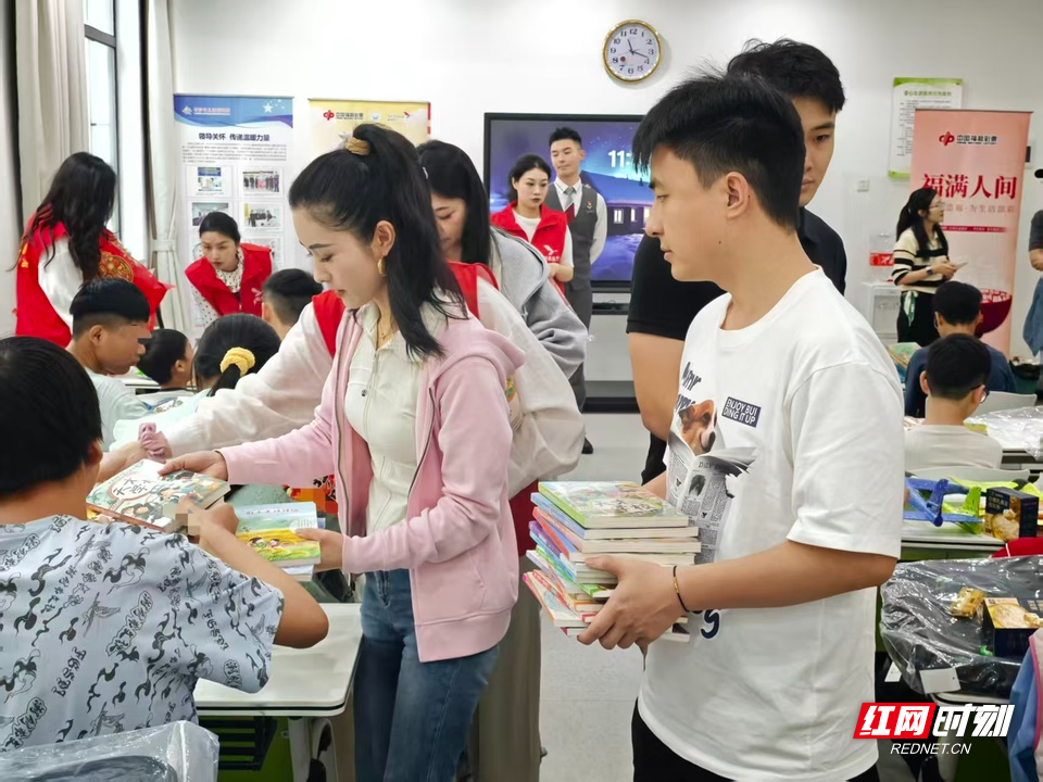 湖南出版集团总部联合支部青年志愿者为孩子们捐赠了100本优质图书。