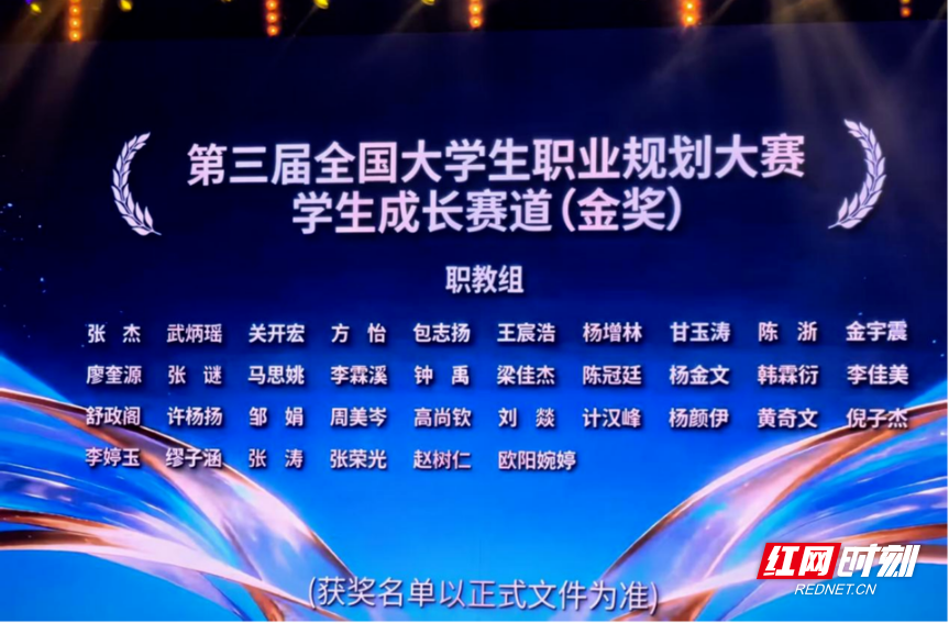 4月25日,第三届全国大学生职业规划大赛总决赛在天津落幕。湖南劳动人事职业学院智能装备制造学院学子金宇震勇夺成长赛道(职教组)金奖,学校首次获评“全国高校优秀组织奖”,学院党委副书记、院长钟秋明代表湖南省高校上台领奖。至此,学校在该赛事上实现国金“零的突破”与赛事组织育人成效获国家级认可的双重跨越。