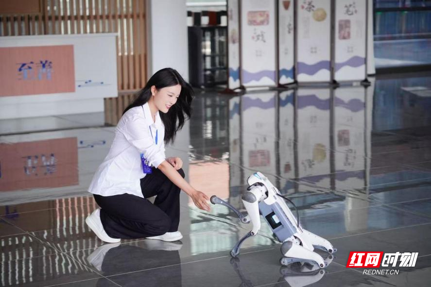 近年来,学校与多家行业领军企业开展深度校企协同育人,既培育了大批高素质技能人才,也孵化出多项兼具社会价值与民生温度的科研成果。目前,学校研发的机器导盲犬已集成语音交互、场景地形识别、智能避障、定向导航等核心功能,并于岳阳楼区残联启动助残试点工作,在当地社区及公共场所开展实地测试与功能优化。