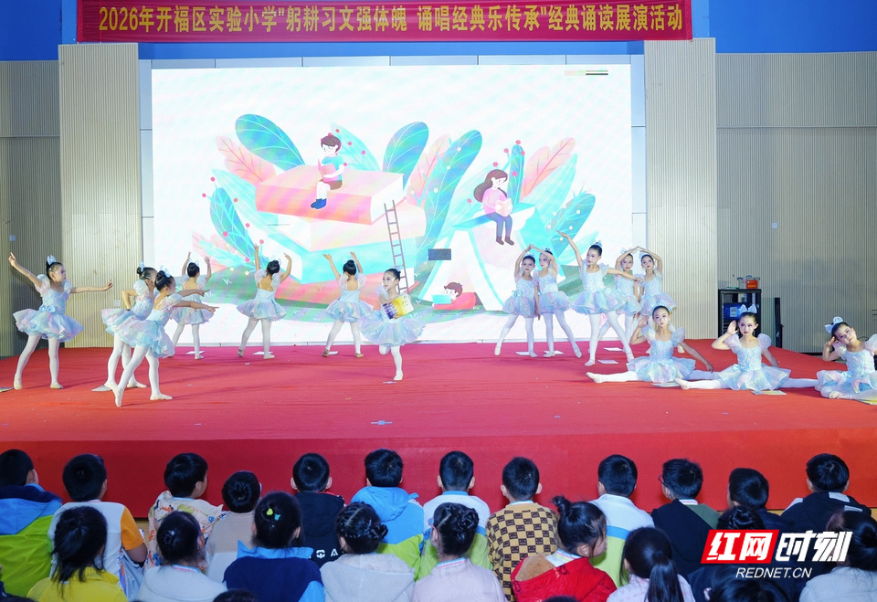 红网时刻新闻4月22日讯(记者 李丹 通讯员 周牧)4月22日,在第31个世界读书日来临之际,开福区实验小学响应湖南“全民阅读活动周”,以“躬耕习文强体魄,诵唱经典乐传承”为主题,举办了2026年经典诵读展演活动。全校师生、家长代表及各界嘉宾齐聚一堂,共同见证了这场浸润书香、传承文脉的文化盛宴。