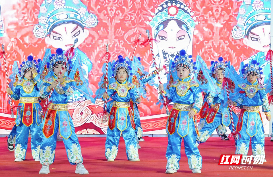 4月22日,长沙市开福区实验小学,一年级二班学生展演的京剧娃娃之梨园闹春。
