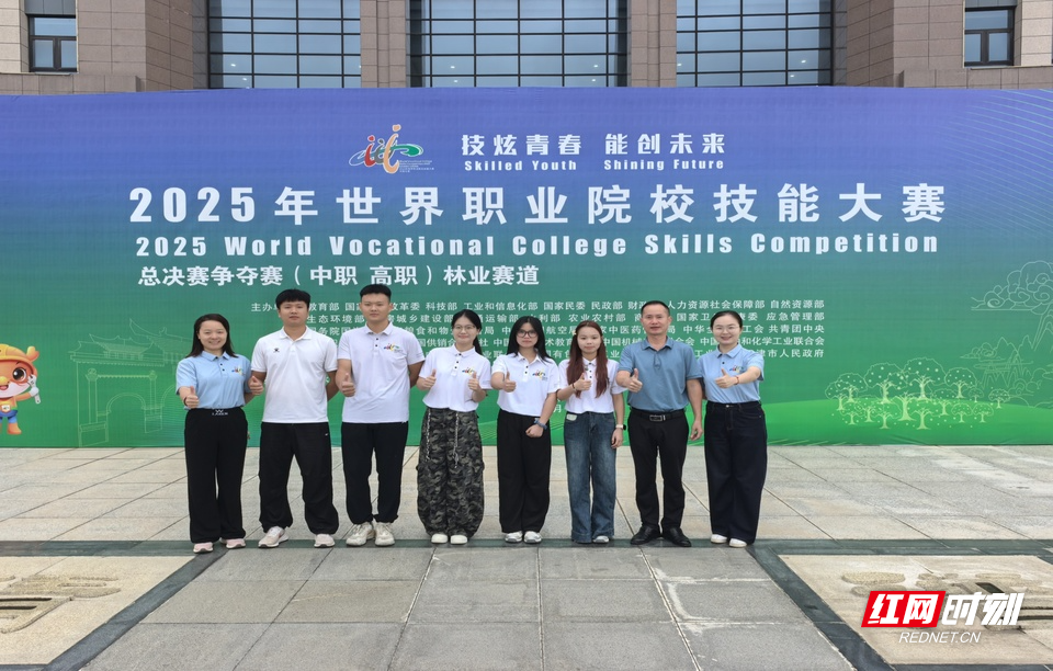 湖南环境生物职业技术学院教师谢光园(右一)带领学生们参加比赛。