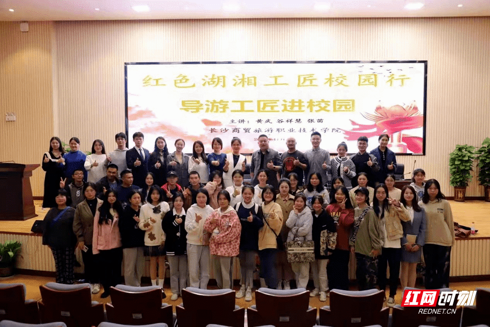 成绩的取得,与学校的人才培养方式密不可分。为打破传统课堂的局限,学校采取了“引企入校+实景育人”的措施,常态化开展“湖湘工匠进校园”“金牌导游进课堂”等活动,邀请长沙导游协会会长黄武、湖南海外国际旅行社导游总监宋庆等行业专家,以及优秀毕业生韩琦、刘芳等回校分享经验。这些活动让学生在校期间就能了解行业动态,学习到一线的实战经验。