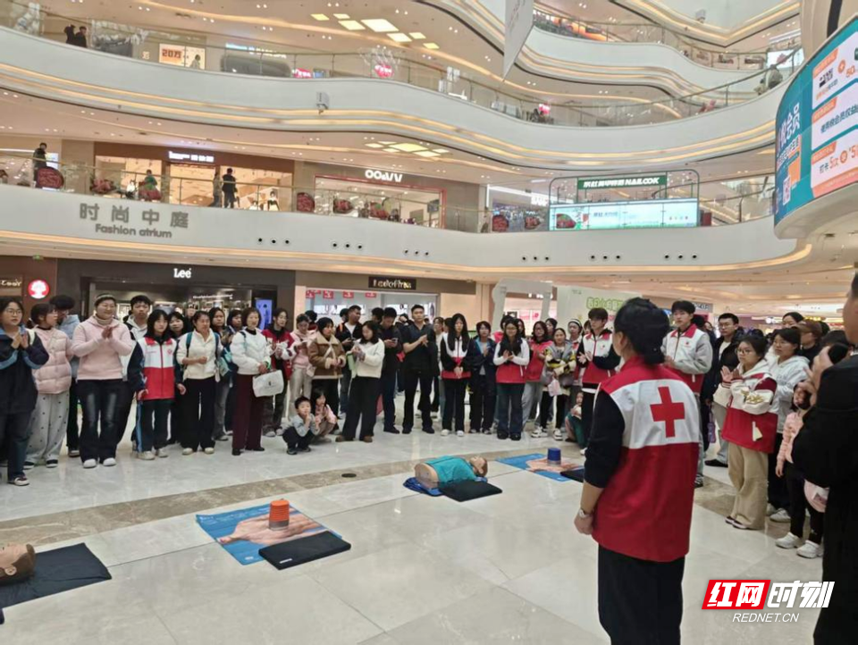 湖南劳动人事职业学院红十字志愿服务队来到长沙县松雅湖吾悦广场开展“传递文明 呵护生命”应急救护知识普及文明实践活动。