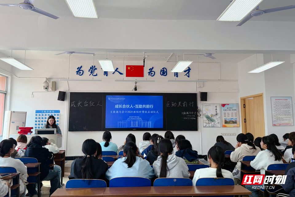 红网时刻新闻10月28日讯(记者 任晔 实习生 周子怡 通讯员 刘洋 徐晶)近日,长沙商贸旅游职业技术学院会计金融学院大数据与会计2531班举行“成长合伙人·互助共前行”结对帮扶启动仪式,47名学生共同开启为期一年的互助成长计划,以“双向赋能”模式探索班级育人新路径。