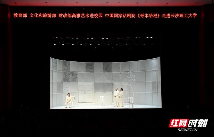 10月18日晚,中国国家话剧院经典剧目《哥本哈根》在长沙理工大学云塘校区大会堂上演。