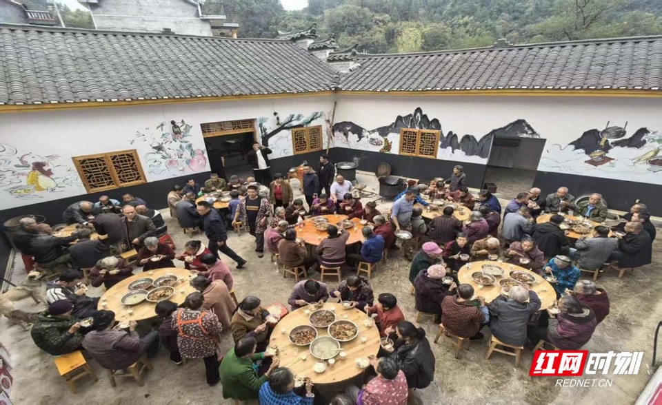红网时刻新闻10月31日讯(记者 汪衡 通讯员 卢静)“愿你们都幸福平安、健康快乐。”10月30日下午,在怀化市麻阳大桥江乡豪侠坪古村落养老互助中心内,150余名留守老人齐聚一堂,一起共享团圆宴席。