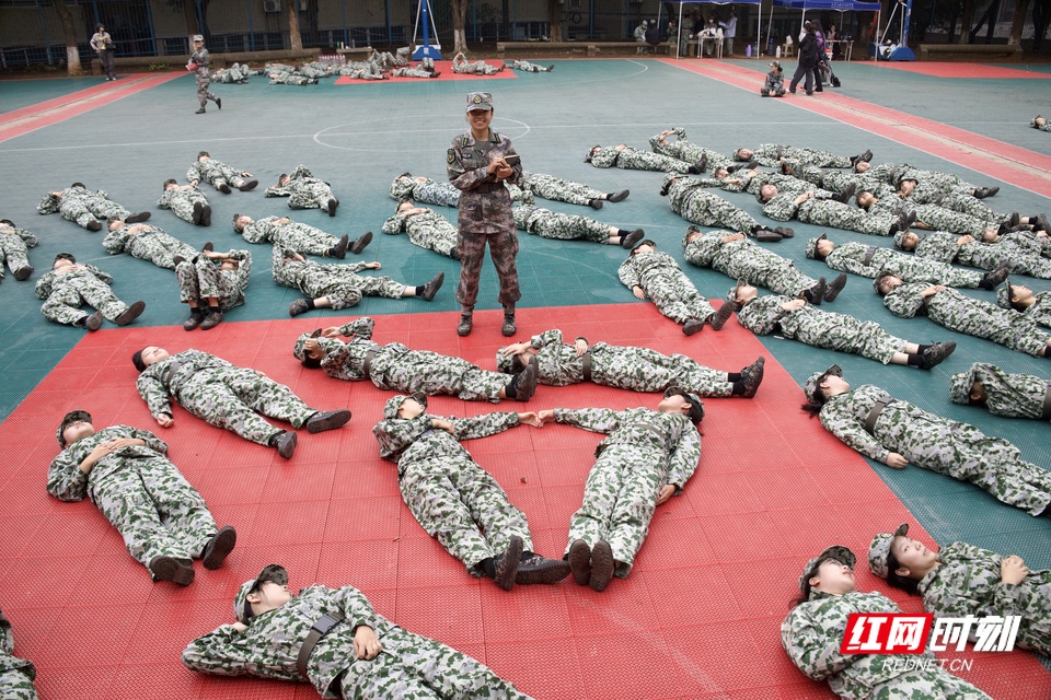 在长沙理工大学文学与新闻传播学院的训练场上,彩旗与迷彩相互映衬,教官们身姿矫健,在队列间来回穿梭,认真负责地指导着每一个动作。阳光下,同学们相互鼓励,真情在彼此间传递。