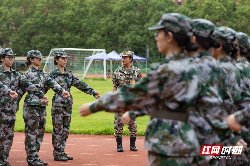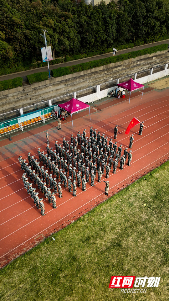 湖南农业大学新生军训正如火如荼地进行。训练场上,教官一丝不苟地开展教学,从脱帽细节到立正姿势,从齐步摆臂到整体队列,耐心指导每一个动作。同学们全神贯注,认真聆听教官指令,以饱满的热情投入训练。现场气氛严肃而有序,大家用标准动作展现着对军训的重视。高空航拍下,夕阳余晖洒在同学们身上,整齐的影子诉说着他们的专注与坚持,教官的呼喊更激励着大家不断挑战自我,锤炼意志。