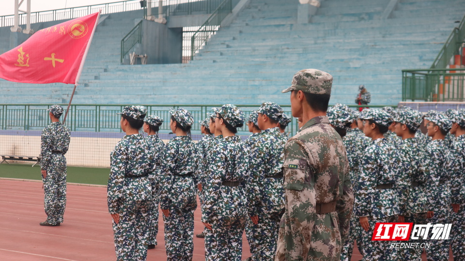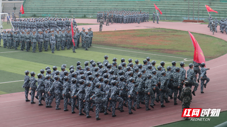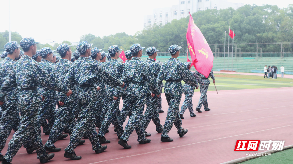 学生方阵在教官目光注视下变得整齐。