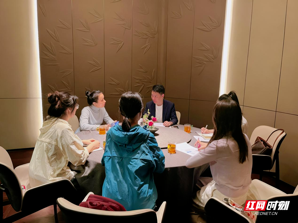 长沙商贸旅游职院师生与熊雄在文化餐厅交流学习。