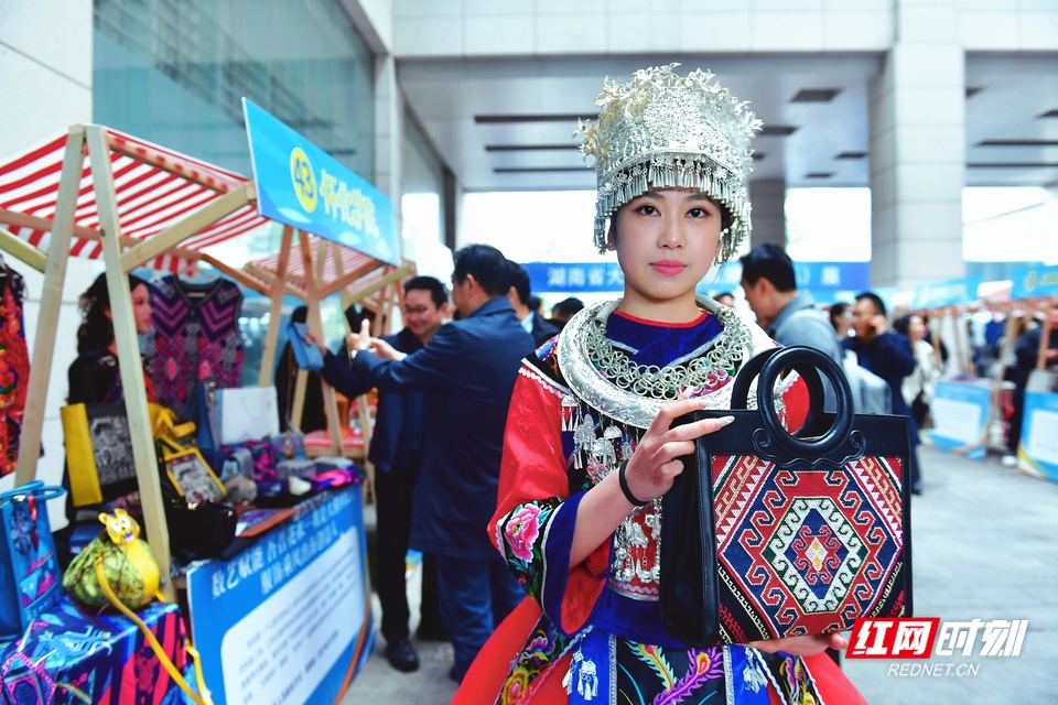 怀化学院创业大学生展示自己的创业作品。