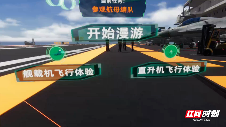 虚拟场景的无限可能让学习打破时空界限:戴上VR眼镜就能“环游”全球著名景区,在情景体验中激发语文、地理、生物等学科兴趣;参与“未来舰长计划”,沉浸式了解舰载机从机库定位、升降机转运到甲板起飞的完整流程,在探秘大国重器中培育科学素养与爱国情怀。同时,学生还能与自己设计的作品合影、生成专属互动短片,进一步提升学习的趣味性与参与感。