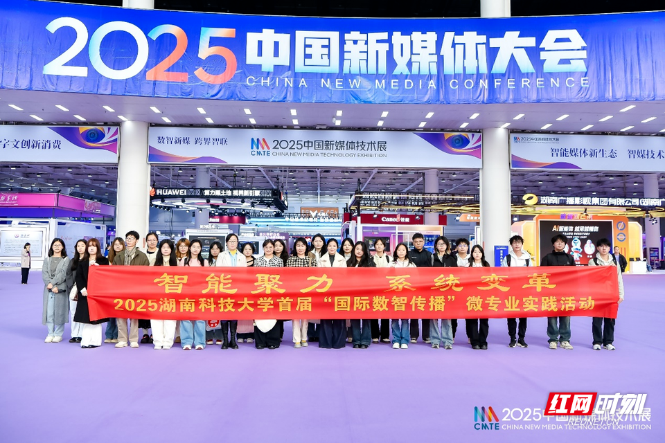 11月13日,湖南科技大学首届“国际数智传播与跨文化沟通”微专业师生参加2025中国新媒体大会。师生们全程参与了以“跨山越海的媒介桥梁”为主题的国际传播论坛,并深度参观了中国新媒体技术展,近距离感受行业前沿动态与技术成果。