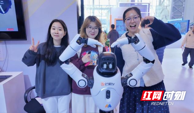 在技术展区,湖南科技大学师生亲身体验了智能机器人互动、VR虚拟现实场景、虚拟片场拍摄等新媒体技术应用,直观感受到技术赋能下传媒形态的快速迭代与创新可能。“很青春,很科技,很炫!”在体验区与AI密切互动的冯星雨同学兴奋地说,“这些展示让我看到了融媒体的无限潜质。”