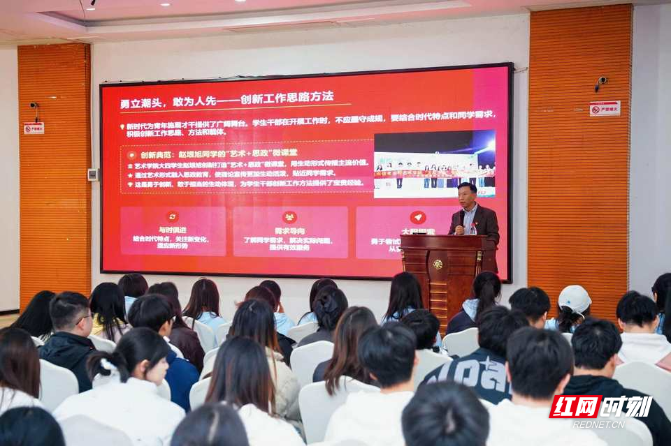 湖南信息学院党委委员、副校长黄涛为全体团学骨干授课。