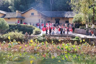11月19日,师生们前往韶山。在毛泽东铜像广场,敬献花篮、肃立祭奠,表达对一代伟人的深切缅怀。走进纪念馆与故居,感受革命岁月的艰辛与辉煌。与韶山学校师生同上一堂思政课并授牌建立实践基地,让红色基因在交流中传承。观看《最忆韶山冲》的沉浸式演出,感受那段波澜壮阔的红色历史。随后,学子们深入黄田村田间,挥镰割稻,亲身体验农耕的艰辛与喜悦。白天在韶山,晚间回到长沙探访太平老街,市井的烟火气成为了思考地域文化与民生百态的鲜活素材。