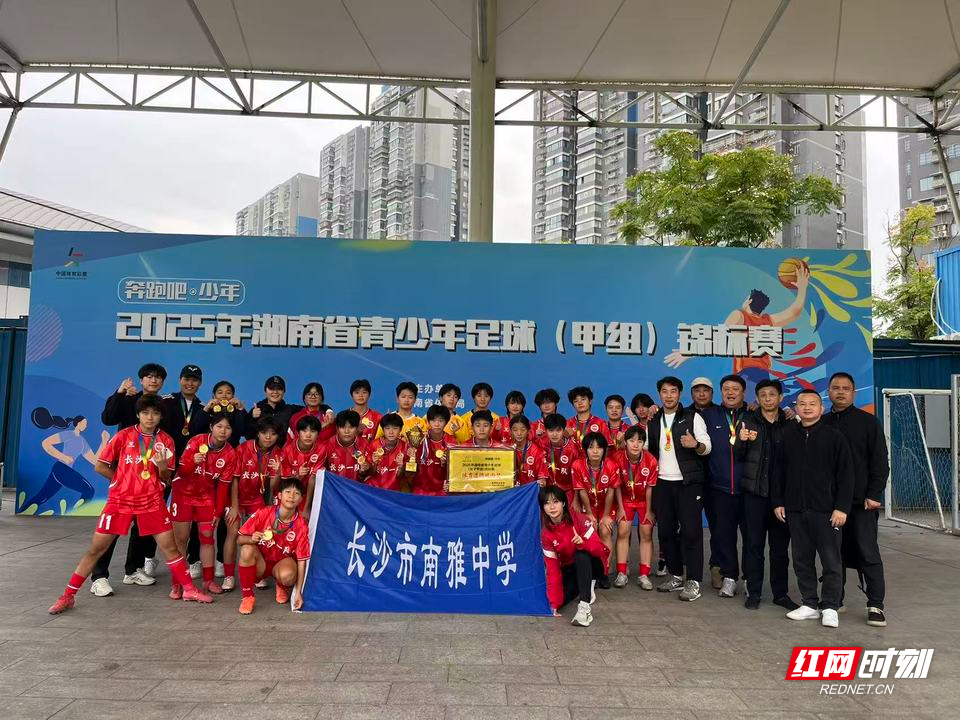 长沙市南雅中学女足问鼎湖南省青少年足球(女子甲组)锦标赛冠军。