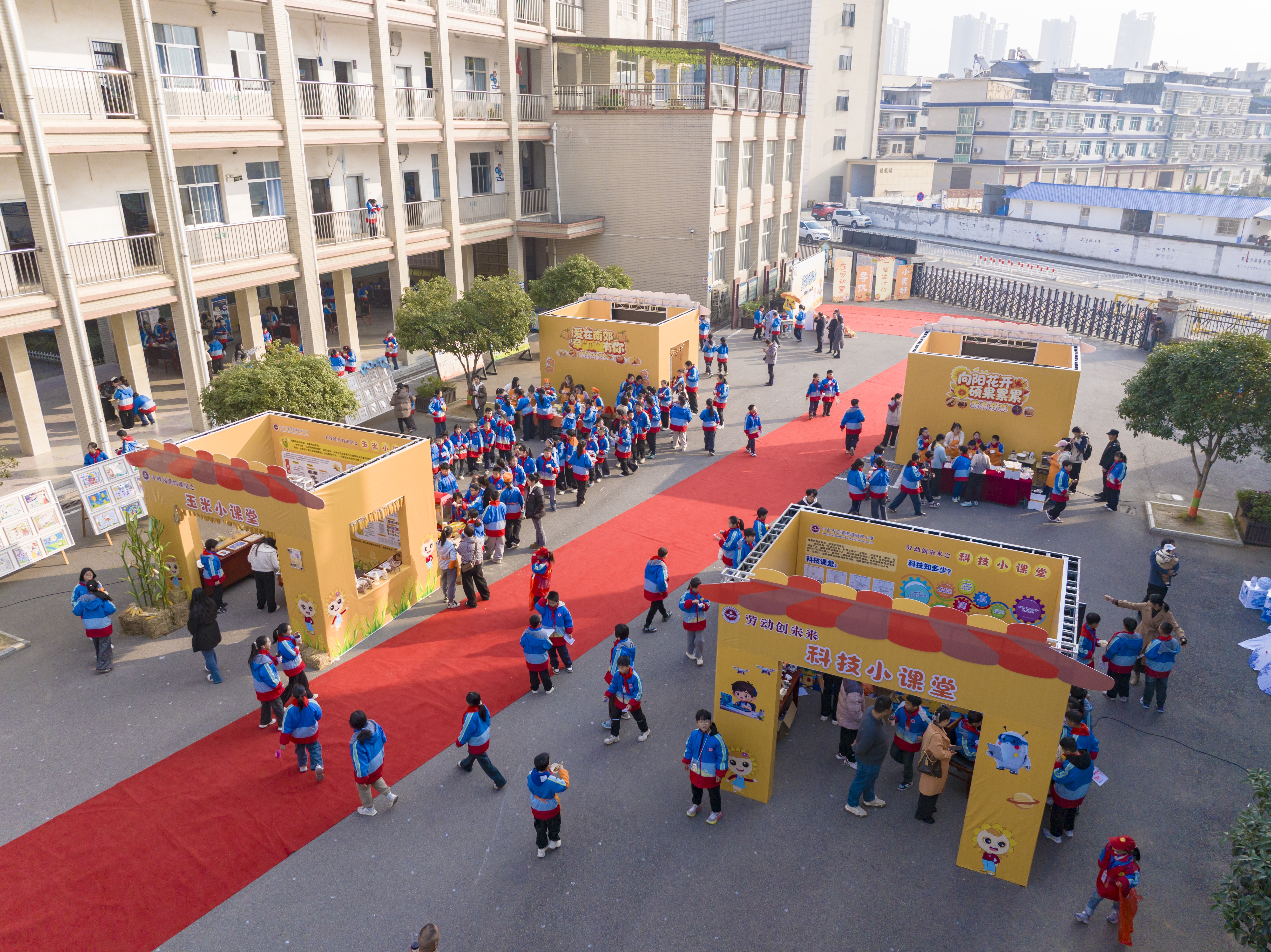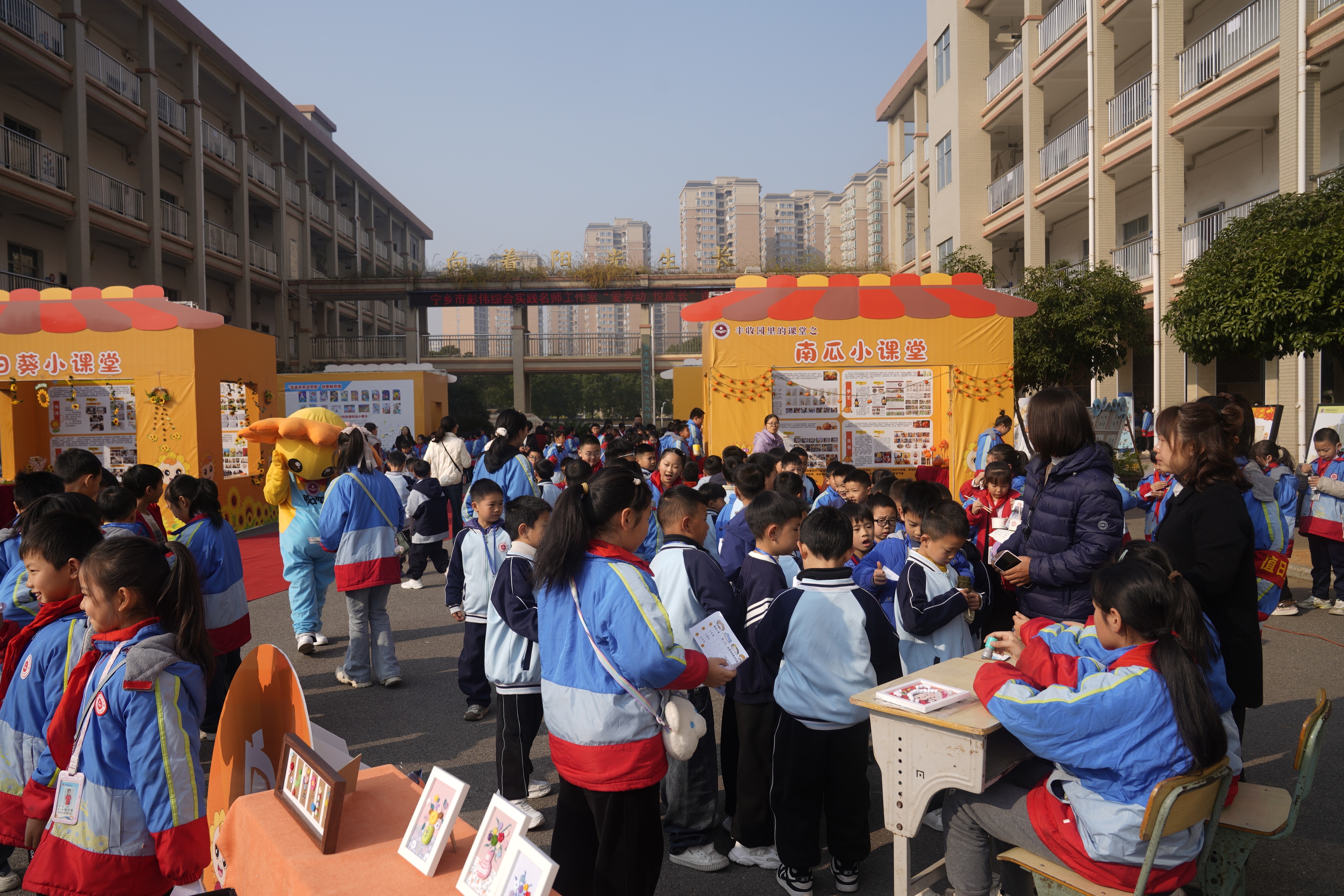 12月18 日,南郊小学小操场及架空层化身热闹的劳动实践乐园,各年级学生分时段参与丰富多彩的体验活动。现场设有手工制作区、书法美术作品展、科技小屋及向日葵坊、南瓜坊、玉米坊等特色主题区域,学生们手持劳动实践卡,在拼装、贴画、科创等项目中动手实践、打卡闯关。