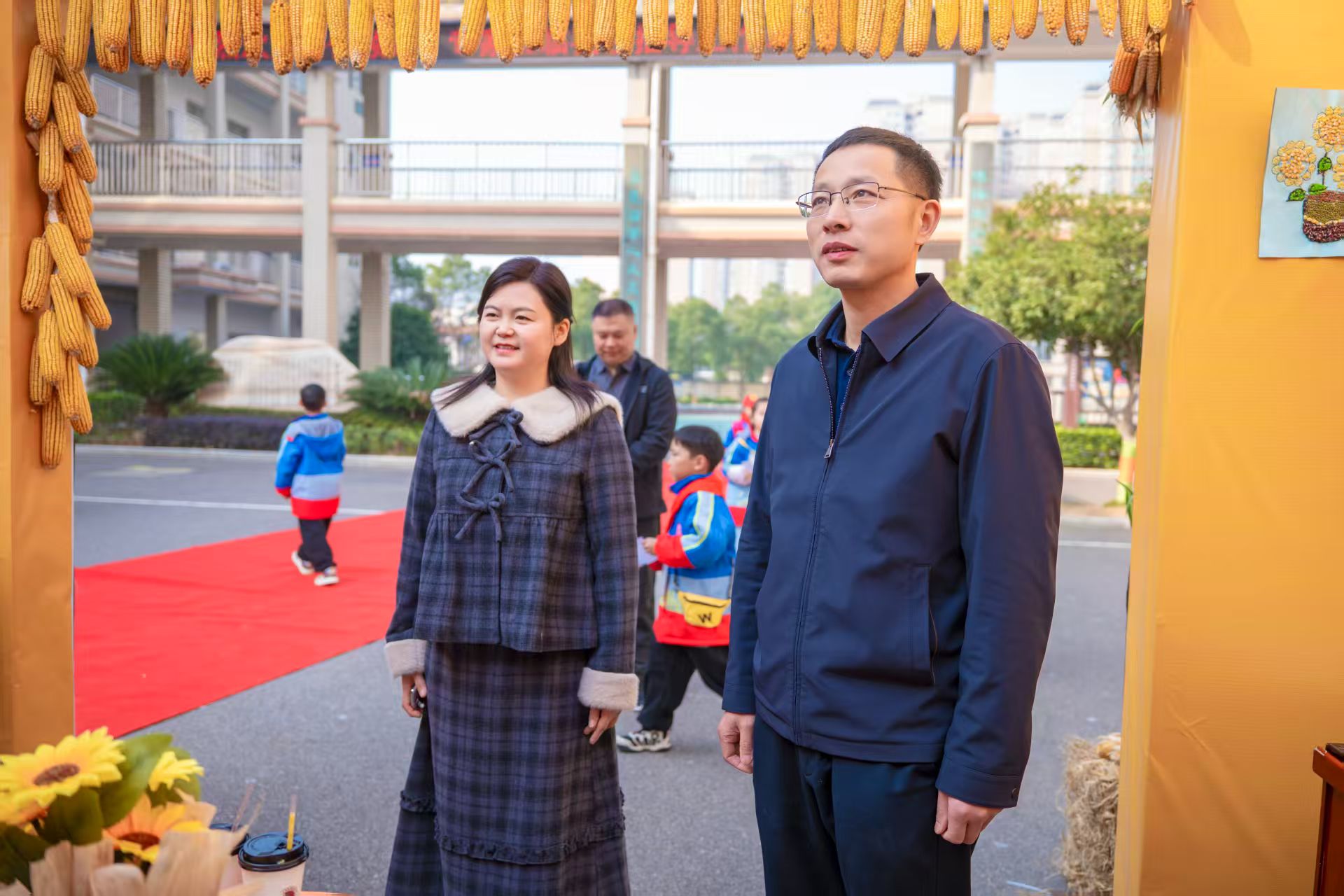宁乡市教育局党委委员、副局长刘志强,党委委员、事务中心主任姜义军来到孩子们中间,观看孩子们的作品,聆听学生解说员的现场讲解,为大家的创意和劳动成果点赞。