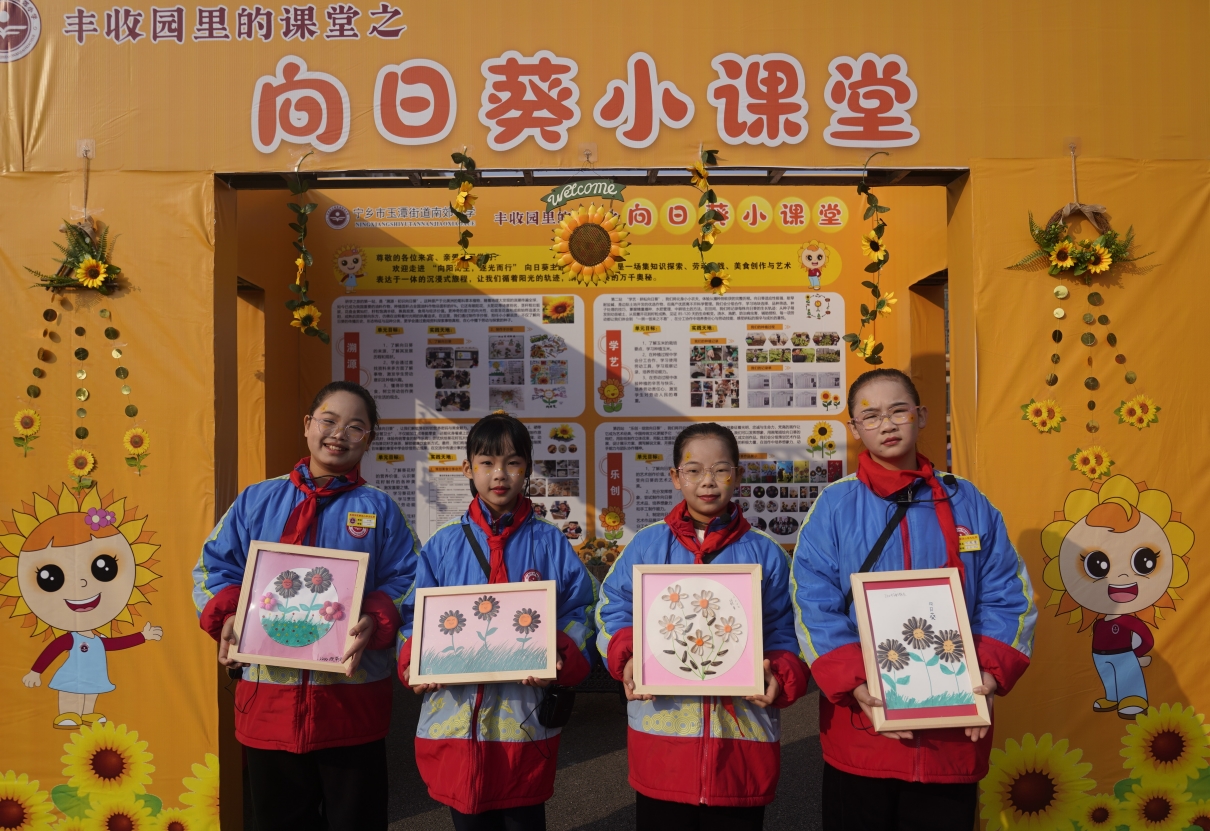 在课程实施中,学校创新 “1+4+4” 模式,通过课赛结合、学科融合、社团助力、多方联动四条途径,推动班级实践、年级做案例、中层做课题、学校做课程的四维推进。五年级的玉米种植课程、三年级的向日葵培育课程等特色项目,均遵循“溯源— 学艺—分享—乐创”四步流程,让学生从了解作物知识、参与种植实践,到制作特色美食、开展创意创作,全程沉浸式体验劳动乐趣与价值。此外,学校还分年级开发了南瓜、紫苏、辣椒等蔬菜种植课程,形成了丰富的“五菜缤纷”农工劳动课程体系。如今,学校已建成400平方米“丰收园”劳动基地及多个专用活动室,积累了“田园语文”“农耕数学” 等丰富的跨学科课程资源。