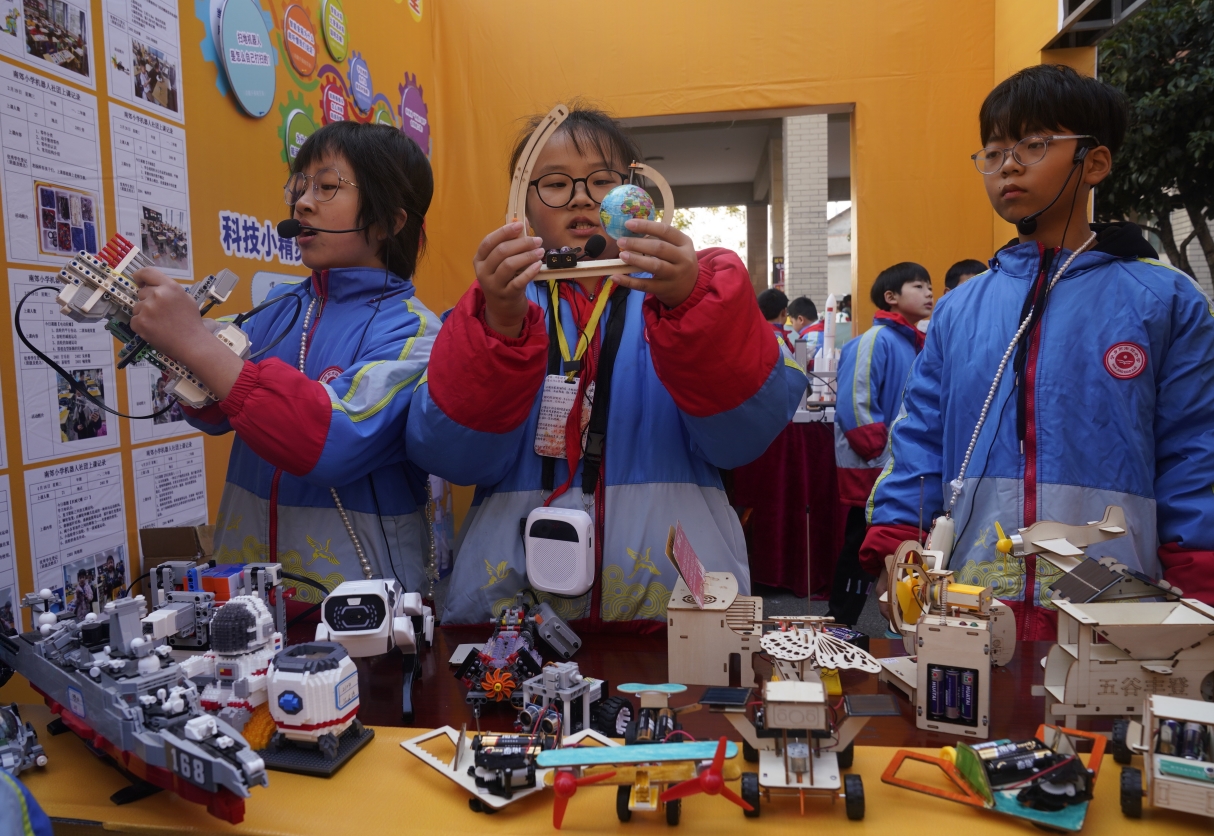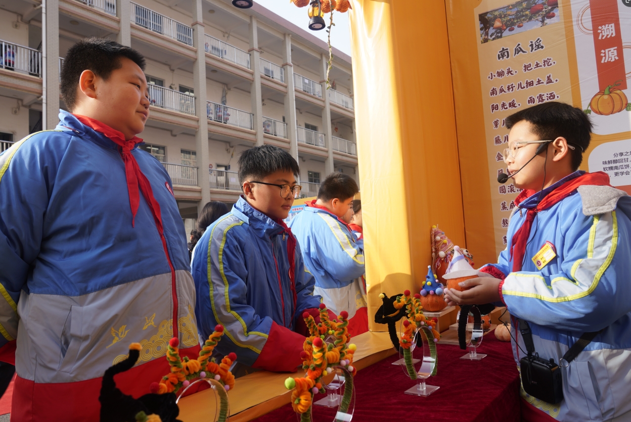 在南瓜坊,学生解说员熟练介绍南瓜种植知识与美食制作技巧,展示台上的南瓜饼、南瓜粥香气四溢;玉米坊内,创意十足的玉米手工艺品与香甜的玉米零食吸引众多师生驻足;向日葵坊中,集中展示了学生们的向日葵项目化资料与手工制作作品,从向日葵盆栽、葵花籽拼画到向日葵主题手抄报,琳琅满目;科技小屋里,学生们通过互动操作感受科技与劳动结合的独特魅力。
