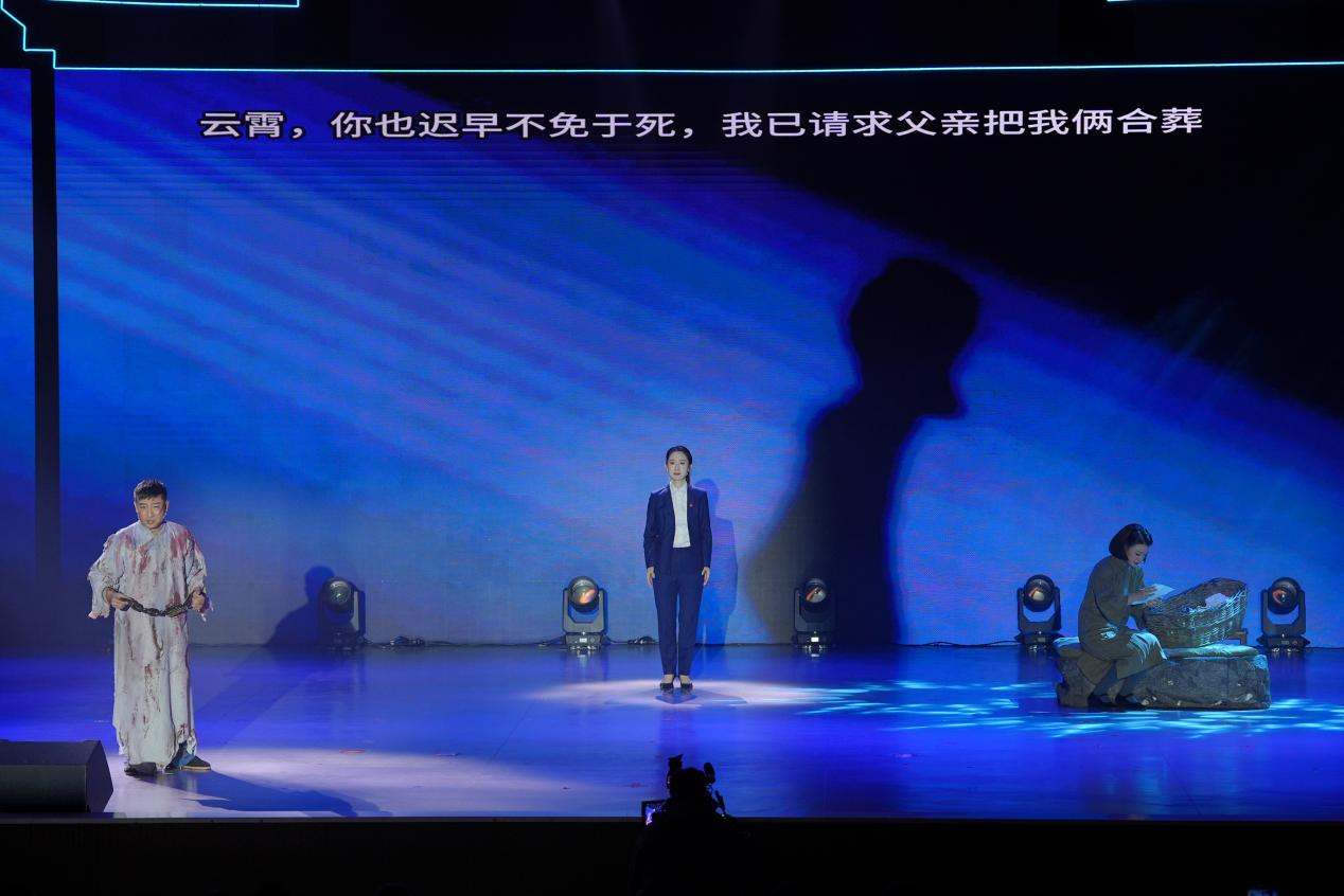 进入“承韵”篇章,株洲市戏剧传承中心带来的《血泪遗书中的家与国》,深情诵出革命先烈对“小家”的眷恋与对“大国”的赤诚;湖南信息学院的《吹号者》再现了先驱者以生命迎接黎明的孤勇与崇高;永州职业技术学院教师们的《英雄母亲邓玉芬》,讴歌了一位平凡母亲在烽火岁月中送夫献子的家国大爱。湖南大众传媒职业技术学院的合唱伴奏将现场氛围推向高潮。