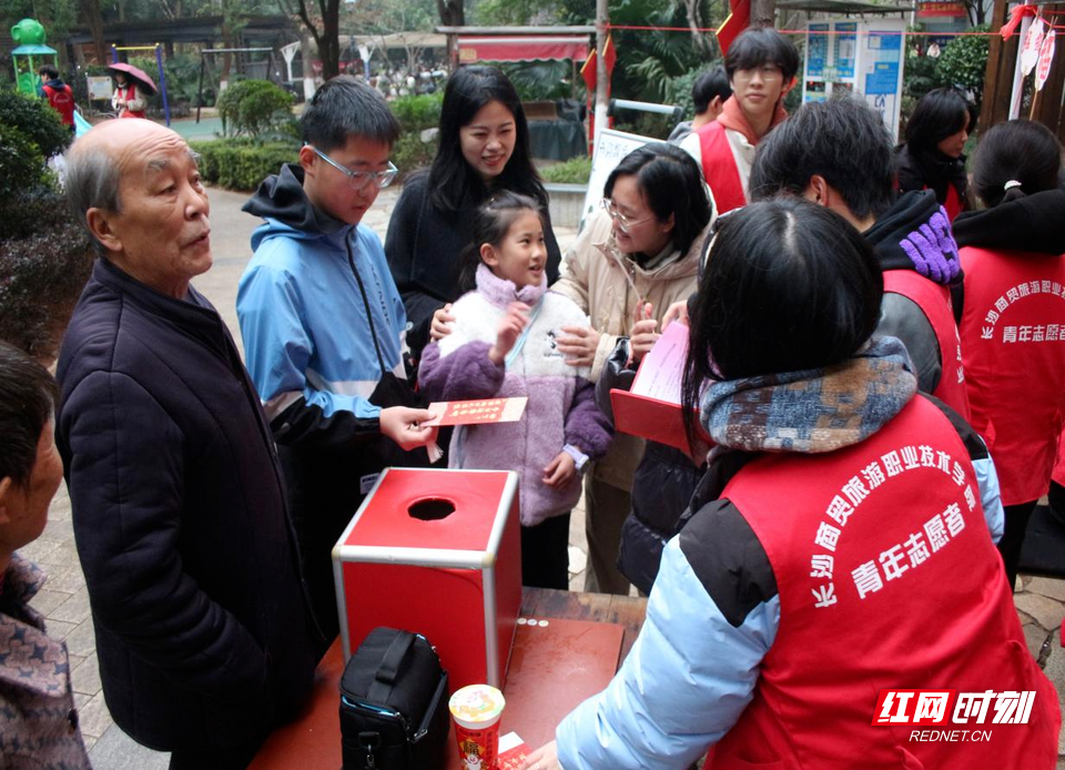 活动现场,学生们将书写的春联、制作的团扇赠予社区老人、孩童与街坊邻里。一张张红纸黑字,不仅承载着新年的祝福,更成为连接代际情感、传递青年温度的“文化信使”。