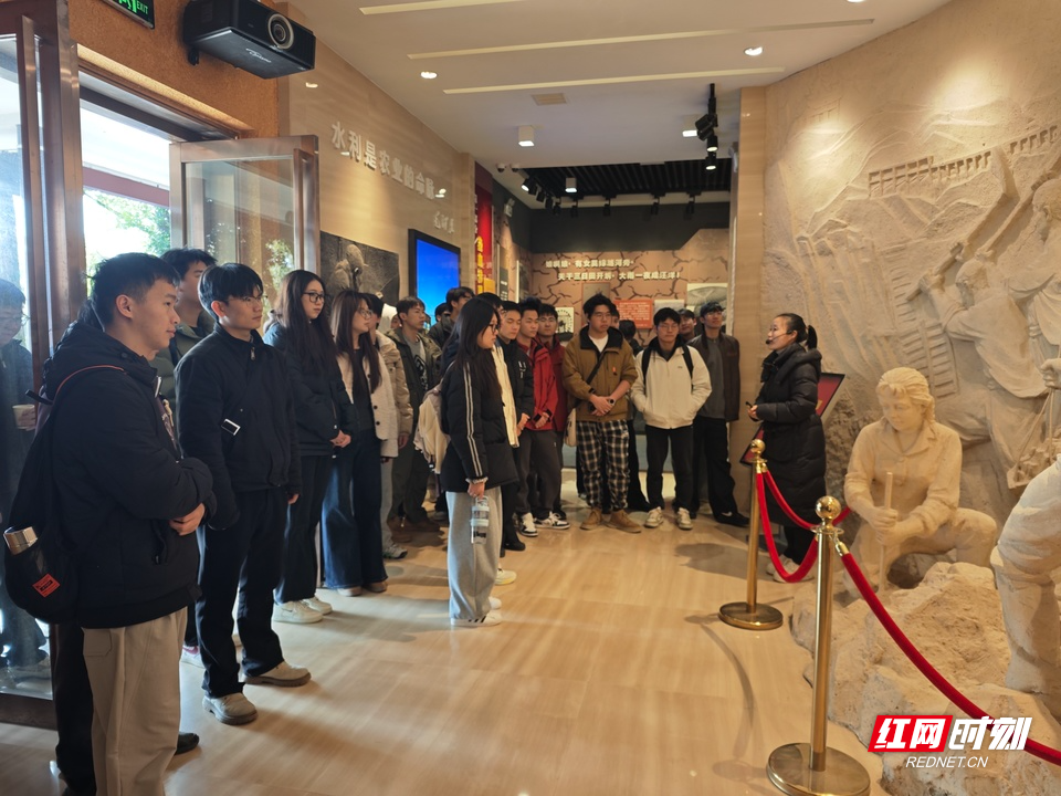 在韶山灌区陈列馆,学生们通过讲解员的讲述,回顾了灌区建设历程。从总体规划到具体建筑模型,从“长藤结瓜”式的灌溉智慧到建设者的奋斗故事,学生们不仅学习了工程规划知识,更深刻体会到水利工程承载的历史责任与为民情怀。这种跨越时空的现场教学,使“管理”二字超越了技术层面,增添了人文温度。