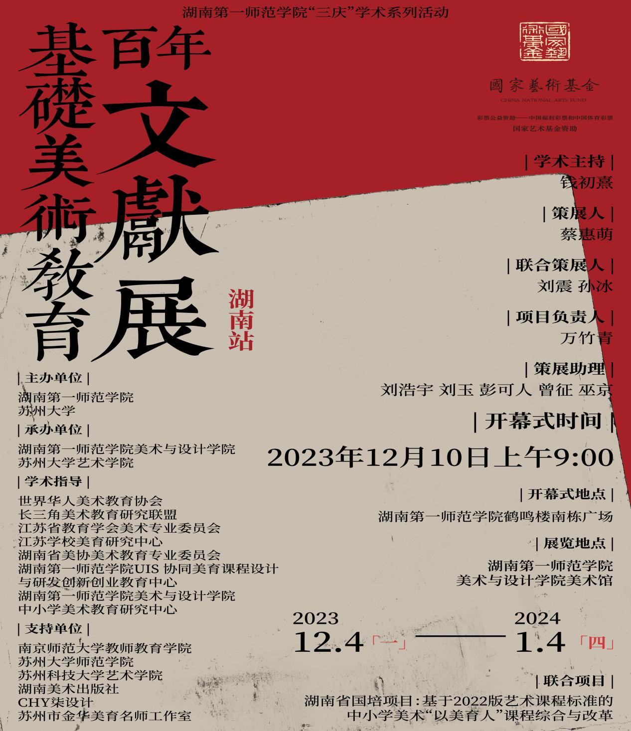 红网时刻新闻12月12日讯(通讯员 刘震 蔡金威 朱炅亮 陈仕芃)12月10日9时,由湖南第一师范学院、苏州大学主办,湖南第一师范学院美术与设计学院、苏州大学艺术学院承办的国家艺术基金《基础美术教育百年文献展》湖南站在湖南第一师范学院开幕。
